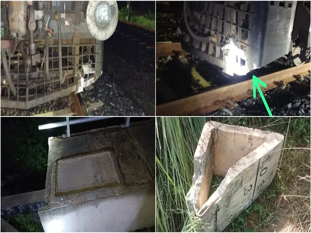 घटना में अजमेर-अहमदाबाद की ट्रेन का इंजन इन ब्लॉक से टकरा गया था और ट्रेन आगे निकल गई थी। रलवे पुलिस को सूचित करने के बाद घटनास्थल से अधिकारियों को लगभग 70 किलो के दो सीमेंट के ब्लॉक मिले थे।