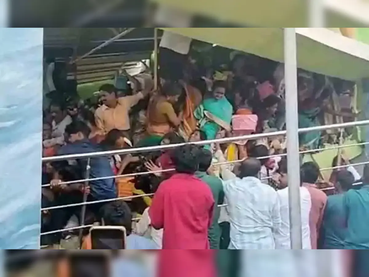 वीडियो फुटेज में एक महिला रेलिंग न होने के कारण लटकती नजर आई। कई लोग भीड़ में फंसे रहे और बचाओ-बचाओ की पुकार करते रहे। कुछ ही मिनटों में आस्था का माहौल अफरा-तफरी में बदल जाता है।