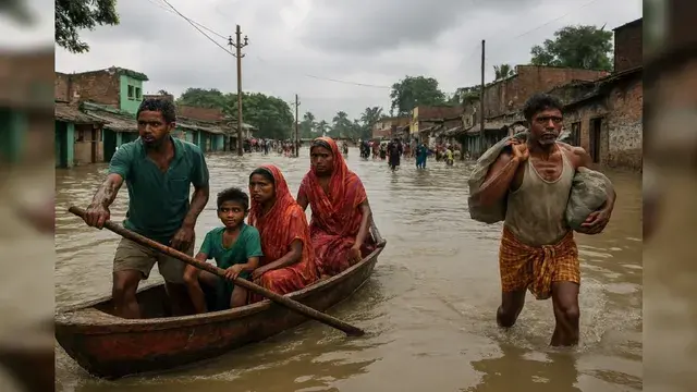 पटना: बिहार एक बार फिर से गंभीर बाढ़ की चपेट में है। नेपाल और राज्य में लगातार हो रही भारी बारिश के कारण कई नदियाँ खतरे के निशान से ऊपर बह रही हैं। इस बाढ़ से भागलपुर, बेगूसराय, खगड़िया, मधुबनी, भोजपुर, पटना, वैशाली, सारण और मुंगेर सहित कई जिलों में 16 लाख से अधिक लोग प्रभावित हुए हैं।