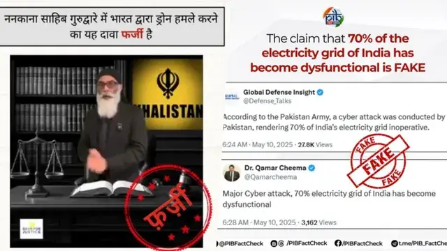 एक अन्य वायरल पोस्ट में कहा गया कि पाकिस्तान के साइबर हमले के चलते भारत का 70% बिजली ग्रिड ठप हो गया है। पीआईबी ने इस दावे की भी पुष्टि करते हुए इसे पूरी तरह मनगढ़ंत और बेबुनियाद बताया। पीआईबी ने कहा, “इस तरह के भ्रामक दावे सोशल मीडिया पर गलत सूचना फैलाने और नागरिकों में डर पैदा करने के उद्देश्य से किए जा रहे हैं।”