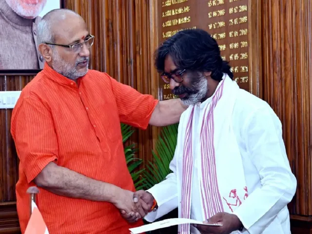 झारखंड के तत्कालीन सीएम चंपई सोरेन ने बुधवार शाम 7.15 बजे राजभवन पहुंचकर राज्यपाल सीपी राधाकृष्णन को इस्तीफा सौंपा था। इसके साथ ही सत्तारूढ़ गठबंधन के नए नेता हेमंत सोरेन ने नई सरकार के लिए दावा पेश करते हुए 45 विधायकों के समर्थन का पत्र राज्यपाल को दिया था। इसके बाद गुरुवार दोपहर करीब 1.30 बजे राज्यपाल सीपी राधाकृष्णन ने हेमंत सोरेन को मुख्यमंत्री नियुक्त करते हुए सरकार बनाने का आमंत्रण दिया था।
