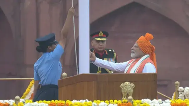 नई दिल्ली: देश में आजादी का 79वां पर्व उत्साह और गौरव के साथ मनाया जा रहा है। इस अवसर पर प्रधानमंत्री नरेंद्र मोदी ने लाल किला की प्राचीर से देशवासियों को संबोधित करते हुए कहा कि ये दिवस 140 करोड़ संकल्पों का महापर्व है।  पीएम मोदी ने शुक्रवार को लाल किले की प्राचीर से 12वीं बार ध्वजारोहण किया। इस ऐतिहासिक अवसर पर प्रधानमंत्री के साथ वायुसेना की फ्लाइंग ऑफिसर रशिका शर्मा मौजूद रहीं।