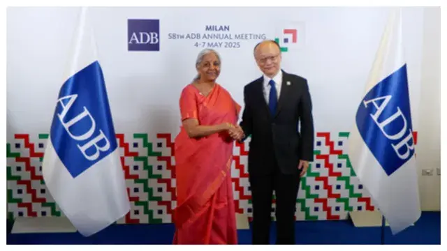 वित्त मंत्री 4 से 7 मई तक इटली के मिलान में आयोजित एडीबी के बोर्ड ऑफ गवर्नर्स की 58वीं वार्षिक बैठक में भाग लेने के लिए मंत्रालय के आर्थिक मामलों के विभाग से एक भारतीय प्रतिनिधिमंडल का नेतृत्व कर रही हैं। सोशल मीडिया प्लेटफॉर्म एक्स पर एक पोस्ट में मंत्रालय ने बताया, ”केंद्रीय वित्त मंत्री निर्मला सीतारमण ने मिलान में एडीबी अध्यक्ष कांडा से मुलाकात की।”