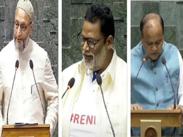 पप्पू यादव ने अंगिका भाषा में शपथ ली। उन्होंने शपथ ग्रहण करने के बाद आखिर में कहा- ‘री नीट, बिहार विशेष राज्य का दर्जा, सीमांचल जिंदाबाद, मानवतावाद जिंदाबाद, भीम जिंदाबाद, संविधान जिंदाबाद।’ इस दौरान पप्पू यादव और सत्ता पक्ष सांसदों के बीच कुछ बहस भी देखने को मिली। नारेबाजी को लेकर टोकाटाकी पर पप्पू यादव ने कहा कि ‘हम 6 बार संसद पहुंचे और आप हमें सिखाएंगे। चार बार निर्दलीय जीता हूं, आपकी तरह किसी की कृपा पर नहीं आया हूं।’