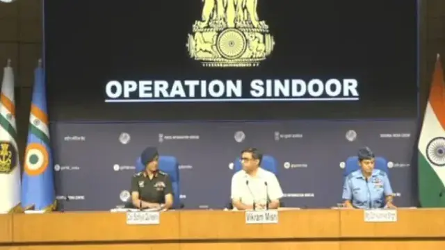 ऑपरेशन सिंदूर पर विदेश सचिव विक्रम मिस्री, कर्नल सोफिया कुरैशी और विंग कमांडर व्योमिका सिंह ने बुधवार को नई दिल्ली में मीडिया जानकारी दी। सैन्य अधिकारियों ने आतंकी ठिकानों पर किए गए हमले की क्लिप भी दिखाई।