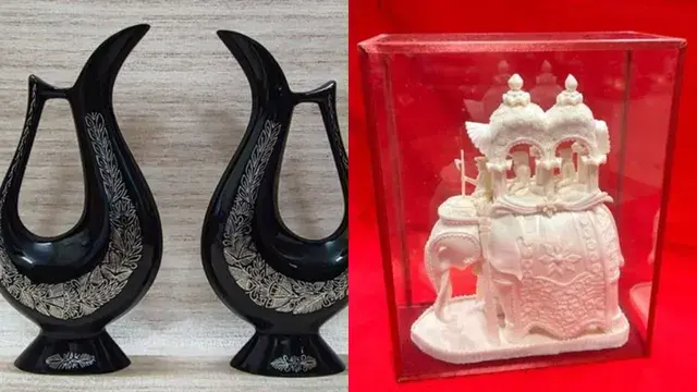 पीएम मोदी ने घाना के राष्ट्रपति जॉन ड्रामानी महामा को बिदरी कलाकृति से सजाए गए फूलदान दिए। इनका निर्माण कर्नाटक के बीदर के कारीगर करते हैं। यह भारत के प्रसिद्ध धातु शिल्प को दर्शाती है, जो अपनी आकर्षक काली फिनिश और बेहतरीन चांदी की जड़ाई के लिए जानी जाती है। यह सदियों पुरानी तकनीक का उपयोग करके कुशल कारीगरों द्वारा हस्तनिर्मित है। फूलदान जिंक-कॉपर मिश्र धातु से बने हैं, इन पर सुंदरता और समृद्धि के प्रतीक पुष्प आकृतियों को उकेरा गया है।