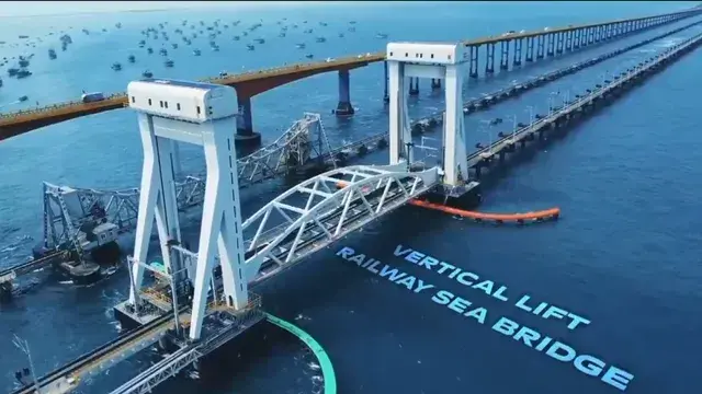 नया पंबन ब्रिज रामेश्वरम को मुख्य भूमि से जोड़ता है और यह भारत का पहला ऐसा समुद्री पुल है जिसमें वर्टिकल लिफ्ट तकनीक का इस्तेमाल किया गया है। ब्रिज की लंबाई 2.08 किलोमीटर है और इसमें कुल 99 स्पैन हैं।