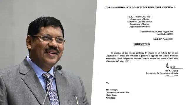 इस महत्वपूर्ण घोषणा की जानकारी केंद्रीय कानून मंत्री अर्जुन राम मेघवाल ने सोशल मीडिया मंच X (पूर्व में ट्विटर) पर साझा की। उन्होंने लिखा, “भारतीय संविधान द्वारा प्रदत्त शक्तियों के तहत, राष्ट्रपति ने श्री न्यायमूर्ति भूषण रामकृष्ण गवई, सुप्रीम कोर्ट के न्यायाधीश, को 14 मई 2025 से भारत के मुख्य न्यायाधीश के रूप में नियुक्त किया है।”