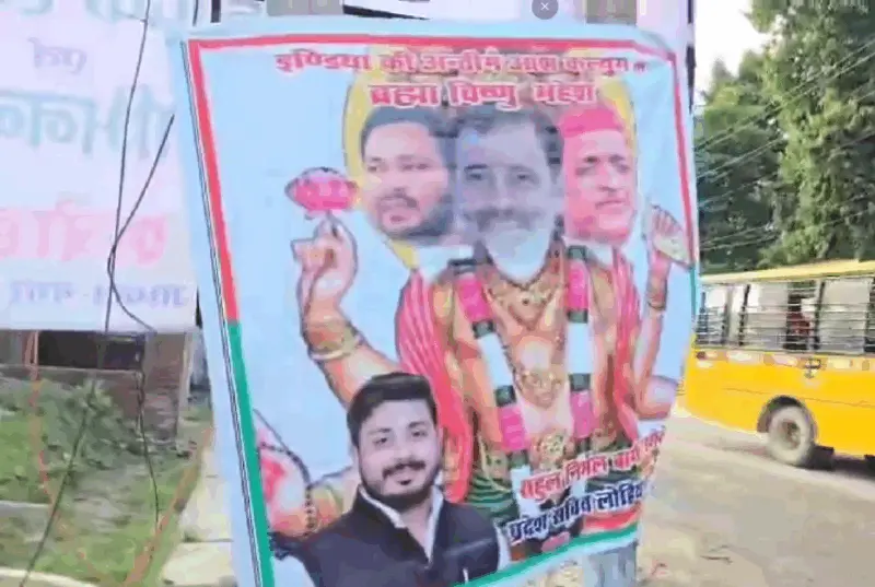 इस होर्डिंग में तेजस्वी यादव को ‘ब्रह्मा जी’, राहुल गांधी को ‘विष्णु जी’ और अखिलेश यादव को ‘महेश जी’ का अवतार कहा गया था। होर्डिंग में ‘इंडिया की अंतिम आश’ भी लिखा हुआ था, जिसने रायबरेली की राजनीति में एक नई बहस छेड़ दी है और यह शहर में चर्चा का विषय बनी हुई है।