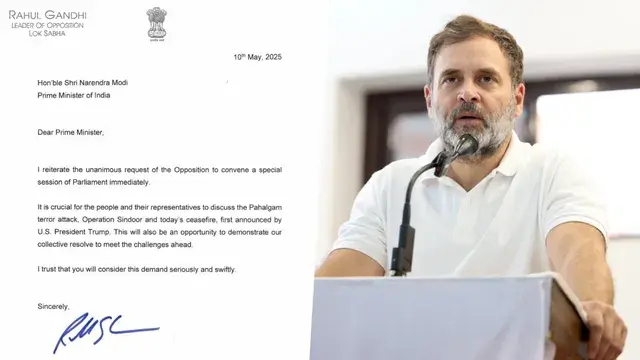 लोकसभा में विपक्ष के नेता राहुल गांधी ने रविवार को प्रधानमंत्री को संबोधित पत्र में लिखा, “मैं विपक्ष के सर्वसम्मत अनुरोध को दोहराता हूं कि संसद का विशेष सत्र तुरंत बुलाया जाए। यह देश के नागरिकों और उनके निर्वाचित प्रतिनिधियों के लिए पहलगाम आतंकी हमला, ऑपरेशन सिंदूर और युद्धविराम जैसे मुद्दों पर चर्चा का अवसर होगा। यह सत्र आने वाली चुनौतियों के प्रति हमारे सामूहिक संकल्प को भी दर्शाएगा। मुझे उम्मीद है कि आप इस अनुरोध पर गंभीरता से और शीघ्रता से विचार करेंगे।”