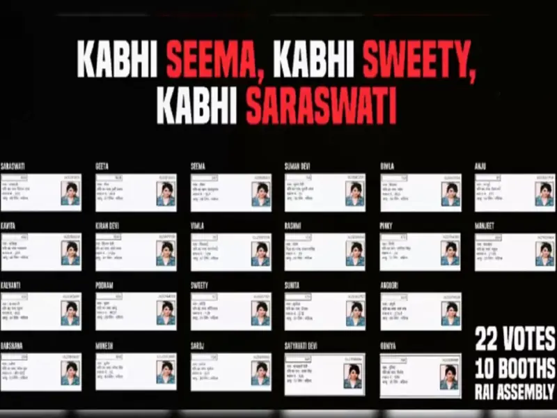 राहुल गांधी ने हरियाणा की मतदाता सूची से कुछ उदाहरण पेश किया। उन्होंने एक महिला की तस्वीर साझा करते हुए दावा किया इसने हरियाणा में 22 वोट डाले हैं। राहुल ने कहा कि यह महिला मैथ्यूस फेरेरो नाम की एक ब्राजीलियाई मॉडल की तस्वीर है। कांग्रेस नेता ने कहा कि इस ब्राजीलियाई महिला की तस्वीर मतदाता सूची में ‘स्वीटी, सीमा, सरस्वती’ जैसे अलग-अलग नामों से 22 जगह दिखती है।