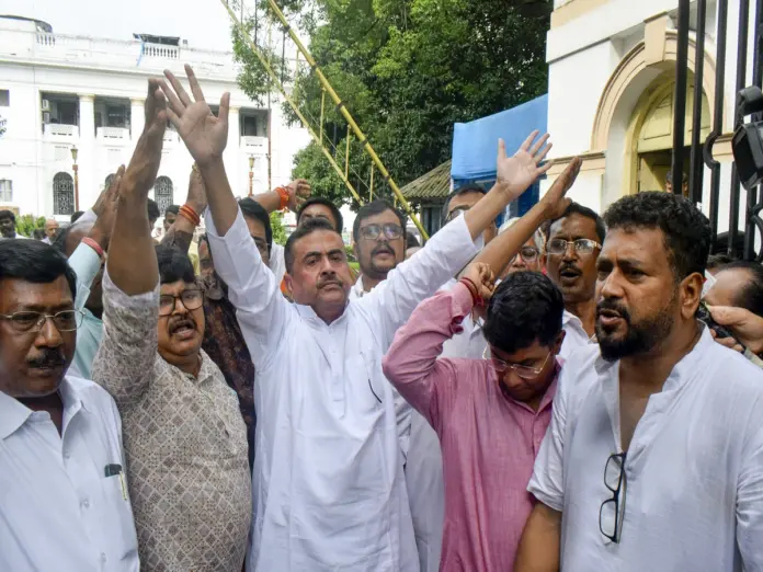 यह सबकुछ विधानसभा में बंगाली प्रवासियों पर ‘अत्याचार’ को लेकर राज्य सरकार के प्रस्ताव पर चर्चा के दौरान हुआ। मुख्यमंत्री ममता बनर्जी इस विषय पर अपनी बात रख रही थीं, इसी दौरान हंगामा शुरू हुआ। भाजपा के विधायकों ने नारेबाजी शुरू कर दी। ये सभी दो सितंबर को सुवेंदु अधिकारी के हुए निलंबन का विरोध कर रहे थे। वे सवाल उठा रहे थे कि अधिकारी को क्यों निलंबित किया गया। अधिकारी को एक दिन के लिए निलंबित किया गया था।