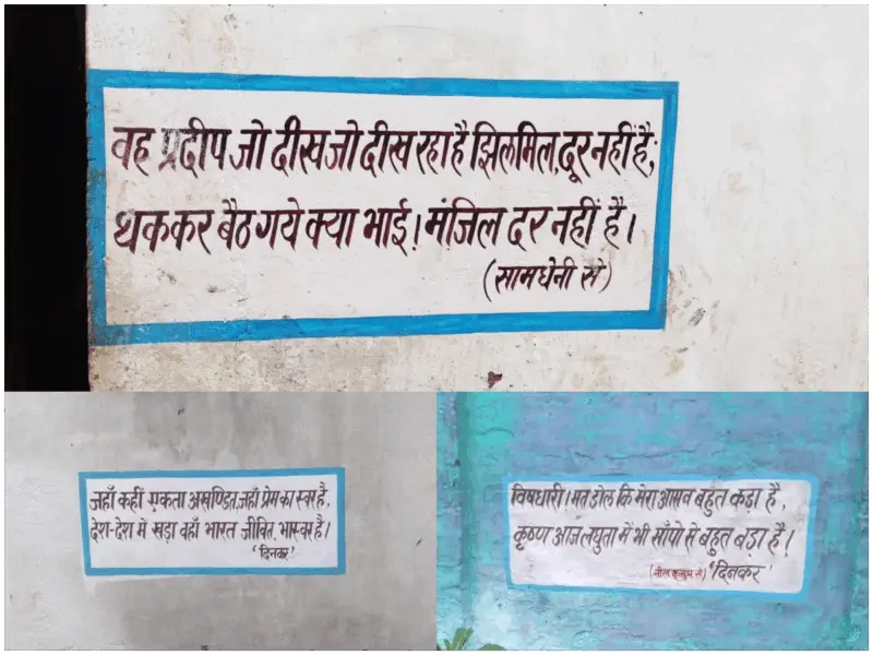 गांव घूमते हुए मैंने यह भी देखा कि सिमरिया का एक भी घर ऐसा नहीं था जिसकी दीवार पर दिनकर की काव्य पंक्तियाँ न लिखीं हों।