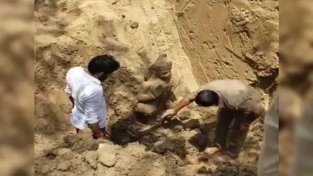 सुल्तानपुरः हनुमान जयंती के दिन खुदाई में निकली 5 फीट ऊंची हनुमानजी की मूर्ति