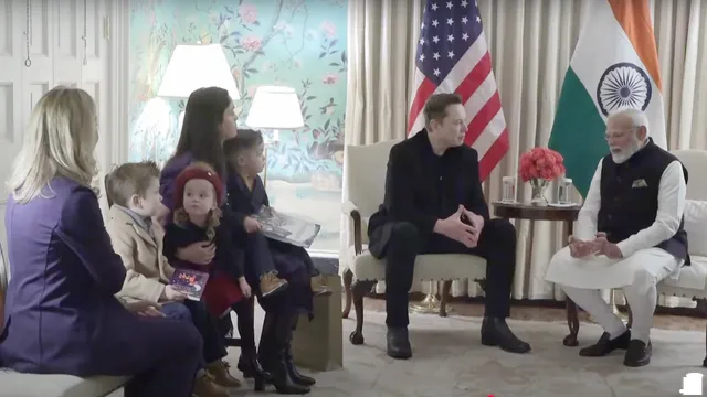 वाशिंगटन डीसी: गुरुवार को अमेरिका उद्योगपति एलन मस्क ने सपरिवार भारतीय प्रधानमंत्री नरेंद्र मोदी से मुलाकात की। पीएम मोदी अमेरिका के एक दिवसीय दौरे पर हैं। एलन मस्क टेस्ला और एक्स (पूर्व में ट्विटर) जैसी नामी कंपनियों के मालिक हैं और अमेरिका के डोनाल्ड ट्रंप प्रशासन में अहम जिम्मेदारी निभा रहे हैं।