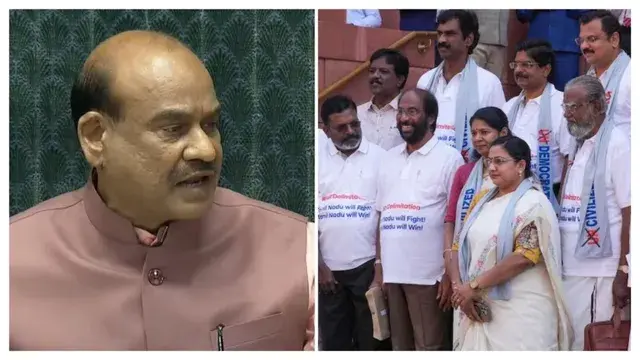 लोकसभा स्पीकर ने अपनी सीट पर खड़े होकर शोरगुल कर रहे विपक्षी सदस्यों से कहा कि यदि वे सदन की कार्यवाही नहीं चलने देना चाहते तो बाहर चले जाएं। इसके साथ ही बिरला ने सदन की कार्यवाही गुरुवार दोपहर 12 बजे तक के लिए स्थगित कर दी। बता दें कि DMK सांसद टी शिवा संसद में एक टी-शर्ट पहनकर पहुंचे, जिस पर लिखा था, ‘निष्पक्ष परिसीमन, तमिलनाडु लड़ेगा, तमिलनाडु जीतेगा।’