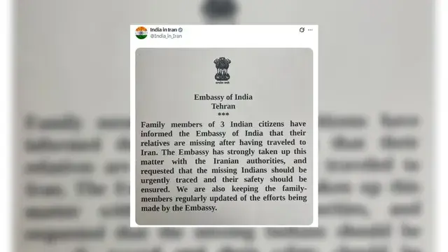 बुधवार को भारतीय दूतावास ने एक आधिकारिक बयान में कहा, “तीन भारतीय नागरिकों के परिजनों ने दूतावास को सूचित किया है कि उनके परिजन ईरान यात्रा के बाद से लापता हैं। इस मामले को हमने मजबूती से ईरानी प्रशासन के समक्ष उठाया है और अनुरोध किया है कि लापता नागरिकों को जल्द खोजा जाए और उनकी सुरक्षा सुनिश्चित की जाए।”