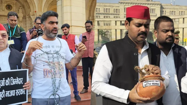उन्होंने कहा कि अमेरिका जिस तरह से भारतीयों का अपमान कर रहा है, इसे बर्दाश्त नहीं किया जाएगा। इस दौरान सपा कार्यकर्ताओं ने हाथों में गगरी और तख्तियां लेकर प्रदर्शन किया। गगरी में लिखा था कि यह नैतिकता का अस्थि कलश है। वहीं तख्तियों में विभिन्न नारे लिखकर भाजपा पर प्रदेश में भाईचारा मिटाने का आरोप लगाया।