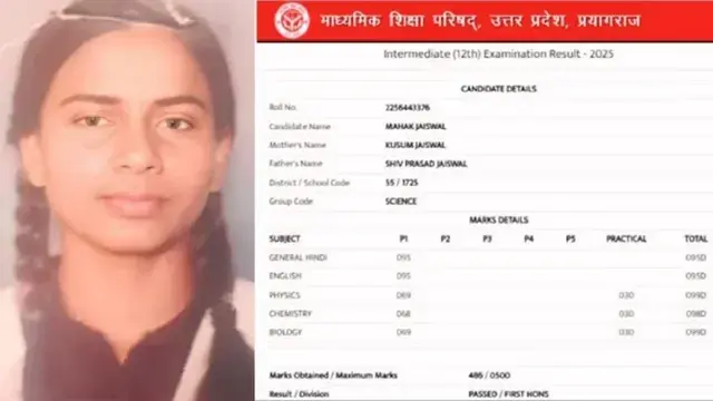 UP Board 12th Result 2025: यूपी बोर्ड की 12वीं के नतीजे शुक्रवार को घोषित कर दिए गए। उत्तर प्रदेश माध्यमिक शिक्षा परिषद (UPMSP) बोर्ड के 12वीं बोर्ड के इस साल के नतीजे बताते हैं कि इंटरमीडिएट में प्रयागराज की महक जायसवाल ने यूपी टॉप किया है। उन्हें कुल 500 में 486 अंक आए हैं। यूपी 12वीं बोर्ड की टॉपर महक जायसवाल की मार्कशीट बताती है कि उन्हें फिजिक्स और बायोलॉजी में 99-99 अंक मिले हैं। इसके अलावा केमिस्ट्री में भी उन्हें 98 अंक आए हैं।