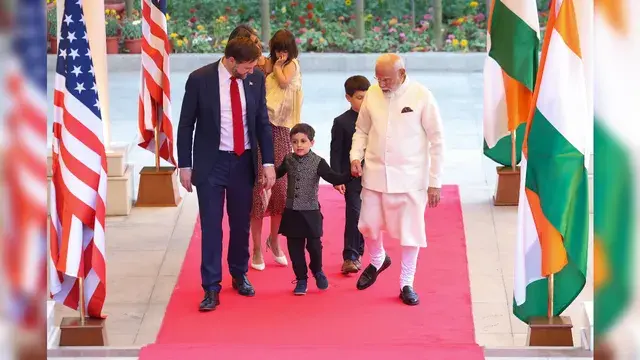 सामने आई तस्वीरों में पीएम मोदी, वेंस परिवार का आत्मीय स्वागत करते नजर आए। वेंस के दोनों बेटे पारंपरिक बन्धगला और नेहरू जैकेट में दिखे, जबकि बेटी मिराबेल ने सुनहरे रंग की फ्रॉक पहनी थी। प्रधानमंत्री ने उनके सम्मान में एक रात्रिभोज भी आयोजित किया है।