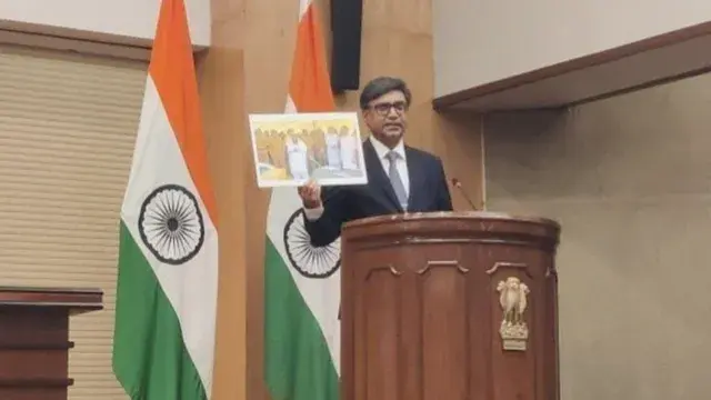 प्रेस ब्रीफिंग के दौरान विक्रम मिस्री ने एक तस्वीर दिखाई जिसमें पाकिस्तानी सेना के लोग ‘ऑपरेशन सिंदूर’ के तहत मारे गए लोगों के जनाजे में शामिल होते दिखाई दे रहे हैं।